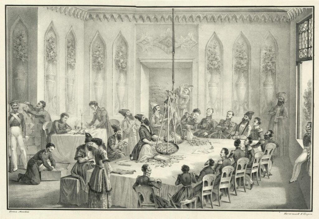 ფოტო: “ხარკის გადახდა თავრიზში”. ავტორი: კ. პ. გებროვი, ვ. ი. მოშკოვი.